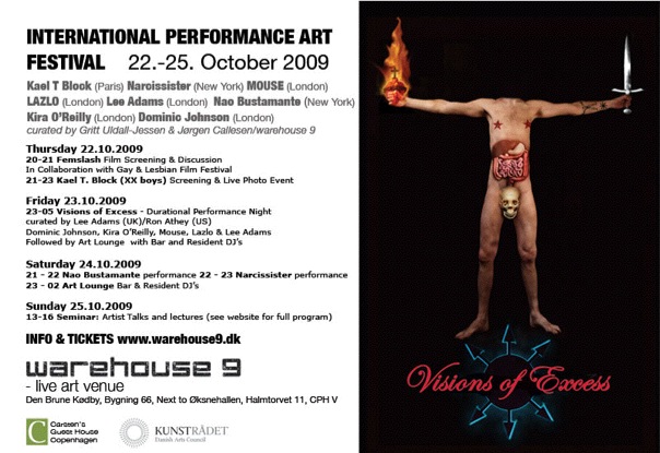 Fierce! Festival’s tenth anniversary celebrations reached their climax with Revisions Of Excess. A reappraisal of the acclaimed Visions Of Excess event in 2003 Revisions Of Excess was co-curated by Ron Athey and myself. Taking place at the Pink Flamingo lap dancing club, Revisions Of Excess took the form of a series of works from a selecton of international artists inspired by the nihilistic writings of Jean Genet and George Bataille. Hosted by the inimitable David Hoyle, the line up of performers included, Kira O’Reilly, Veenus Vortex, Empress Stah, Valentina Violette of The Velvet Hammer Burlesque, Dominic Johnson, Ashley Ryder, Lazlo Pearlaman, Mouse & many more. Music by David TG (Torture Garden) & Kaos DJ’s Dr Mu & Bradley Kaos plus visuals from Black Sun Productions, Suka Off & VJ Oskur.